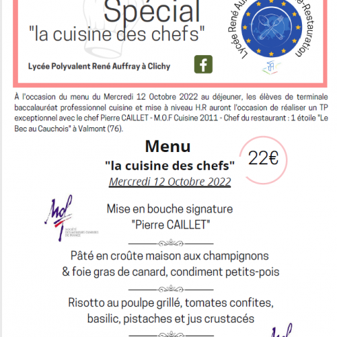 Affiche menu du 12 Octobre 2022 – Chef Caillet