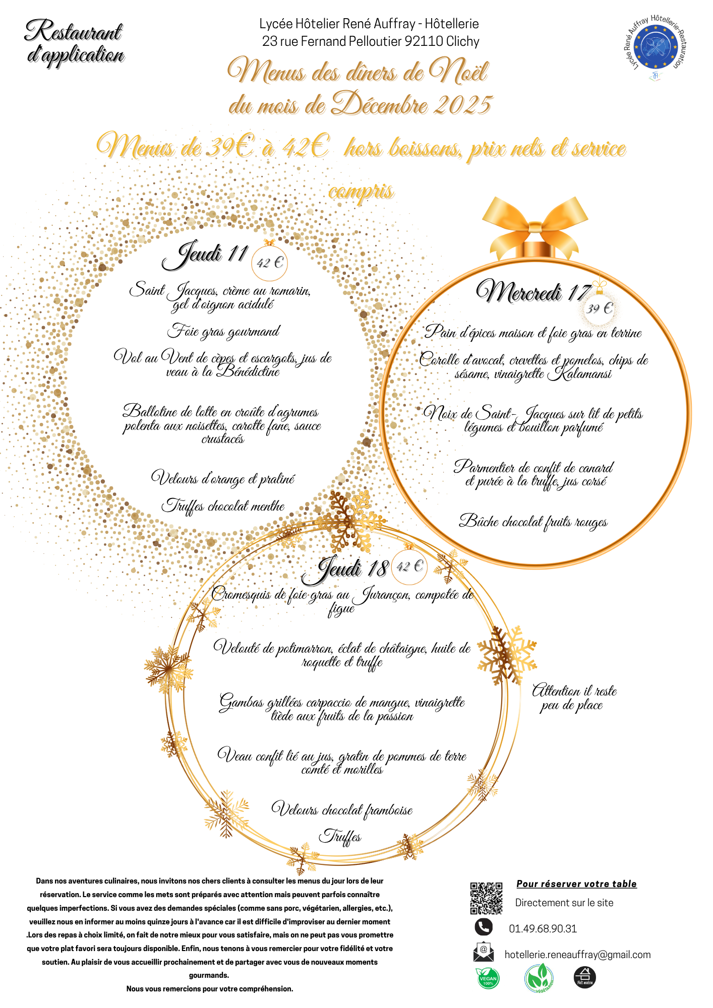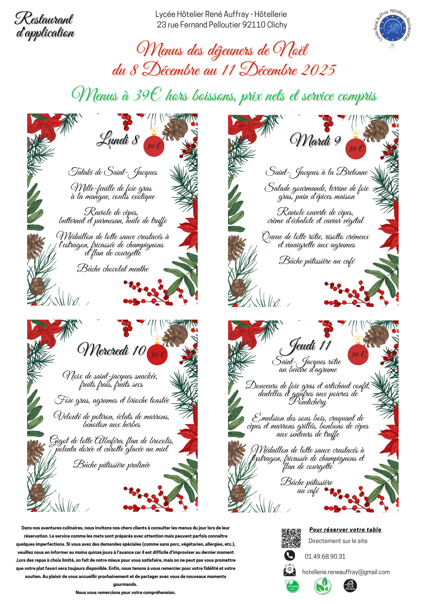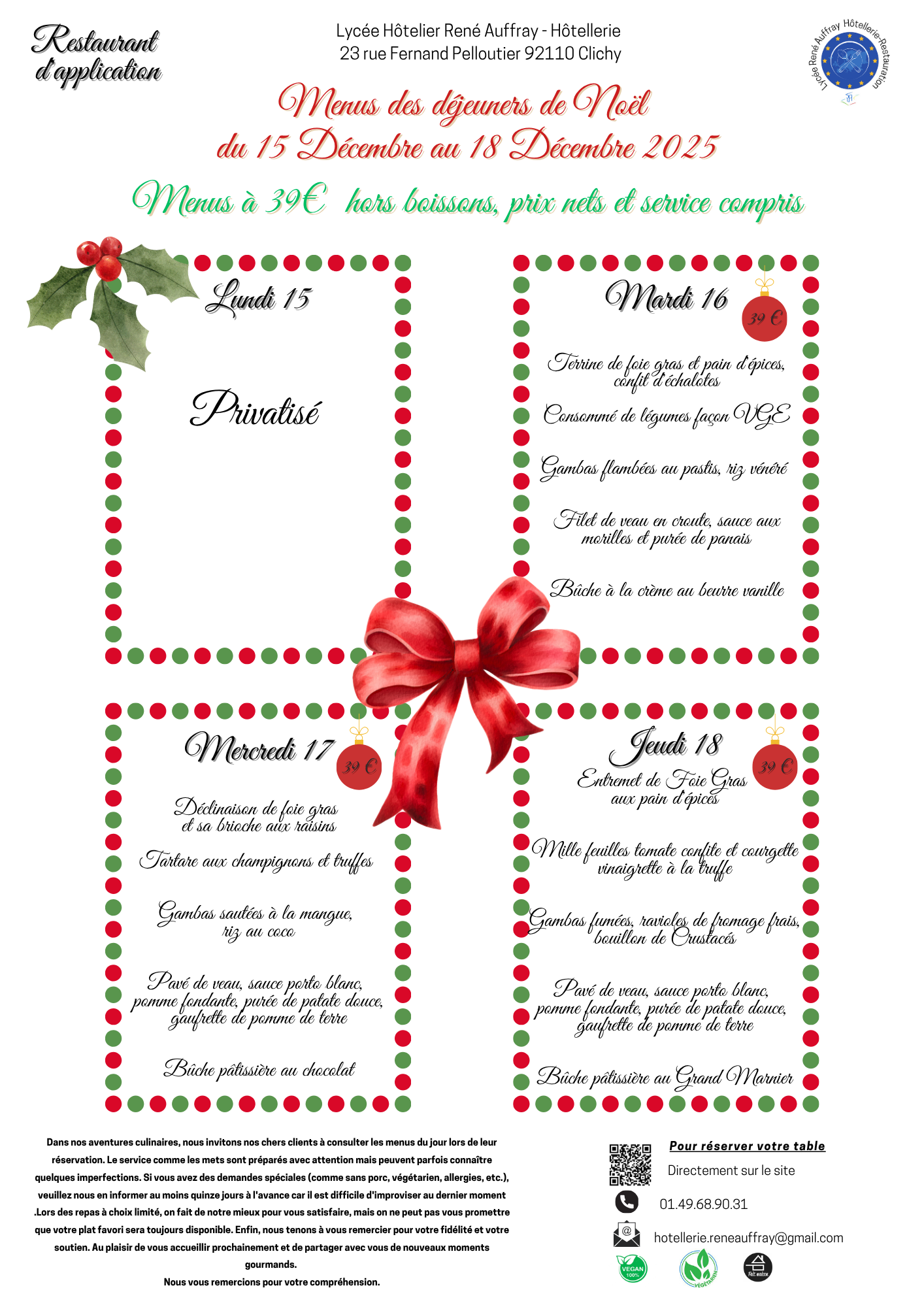 Nos élèves, étudiants et apprentis ainsi que toute l’équipe pédagogique sont heureux de vous accueillir dans notre restaurant d’application.